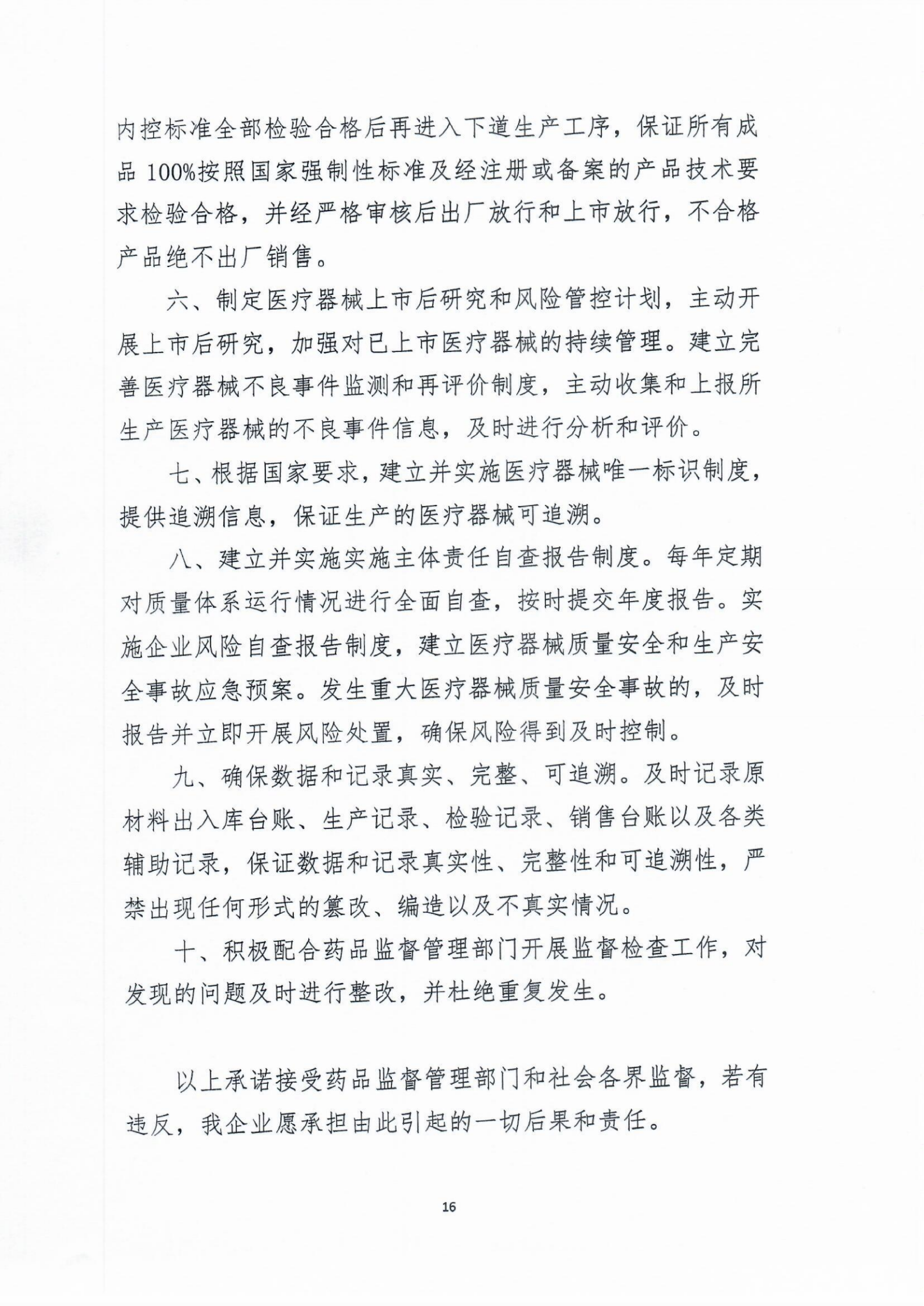 醫(yī)療器械質(zhì)量安全主體責(zé)任承諾書