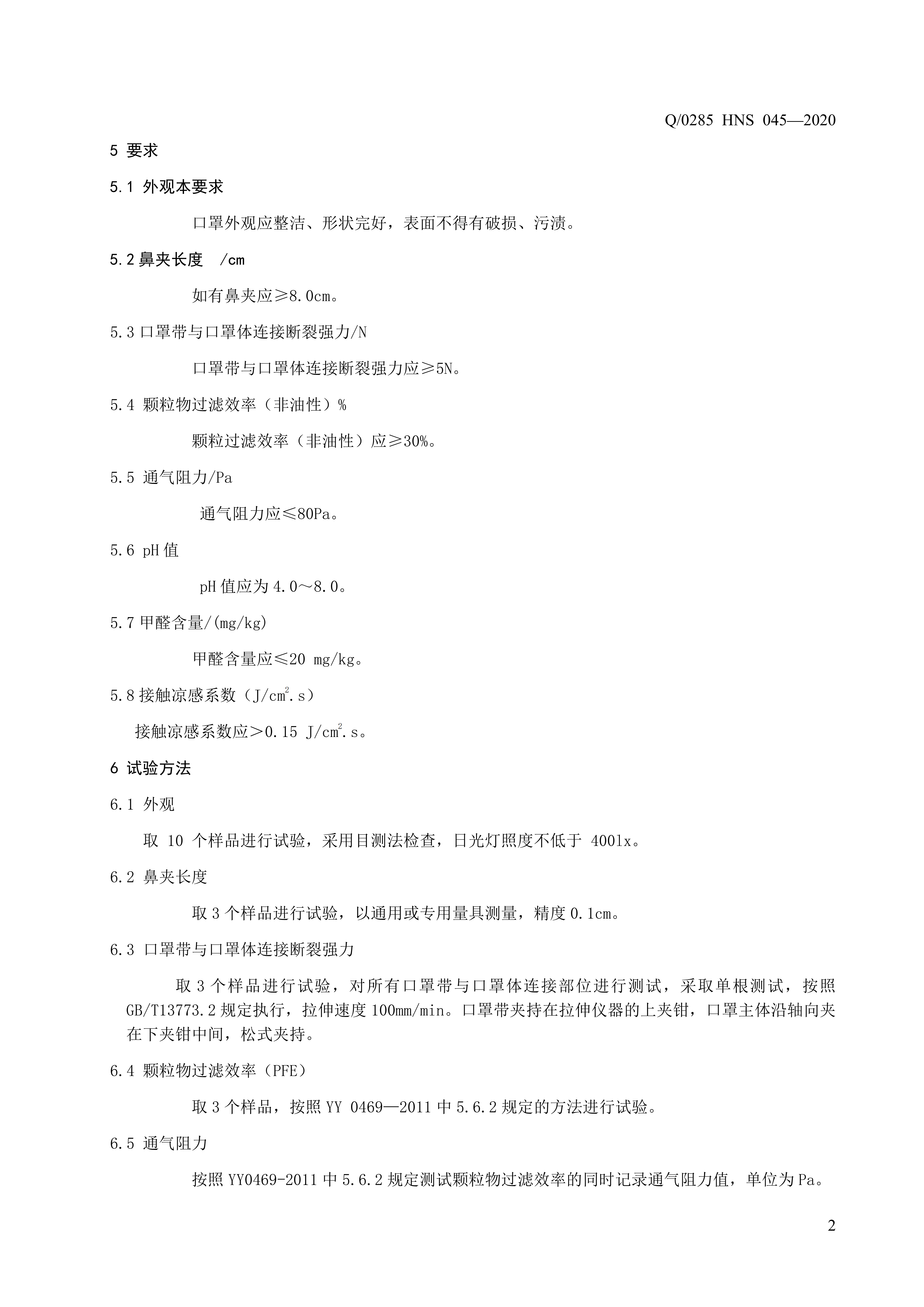 青島海諾生物工程有限公司企業(yè)標(biāo)準(zhǔn) — 薄荷清涼口罩