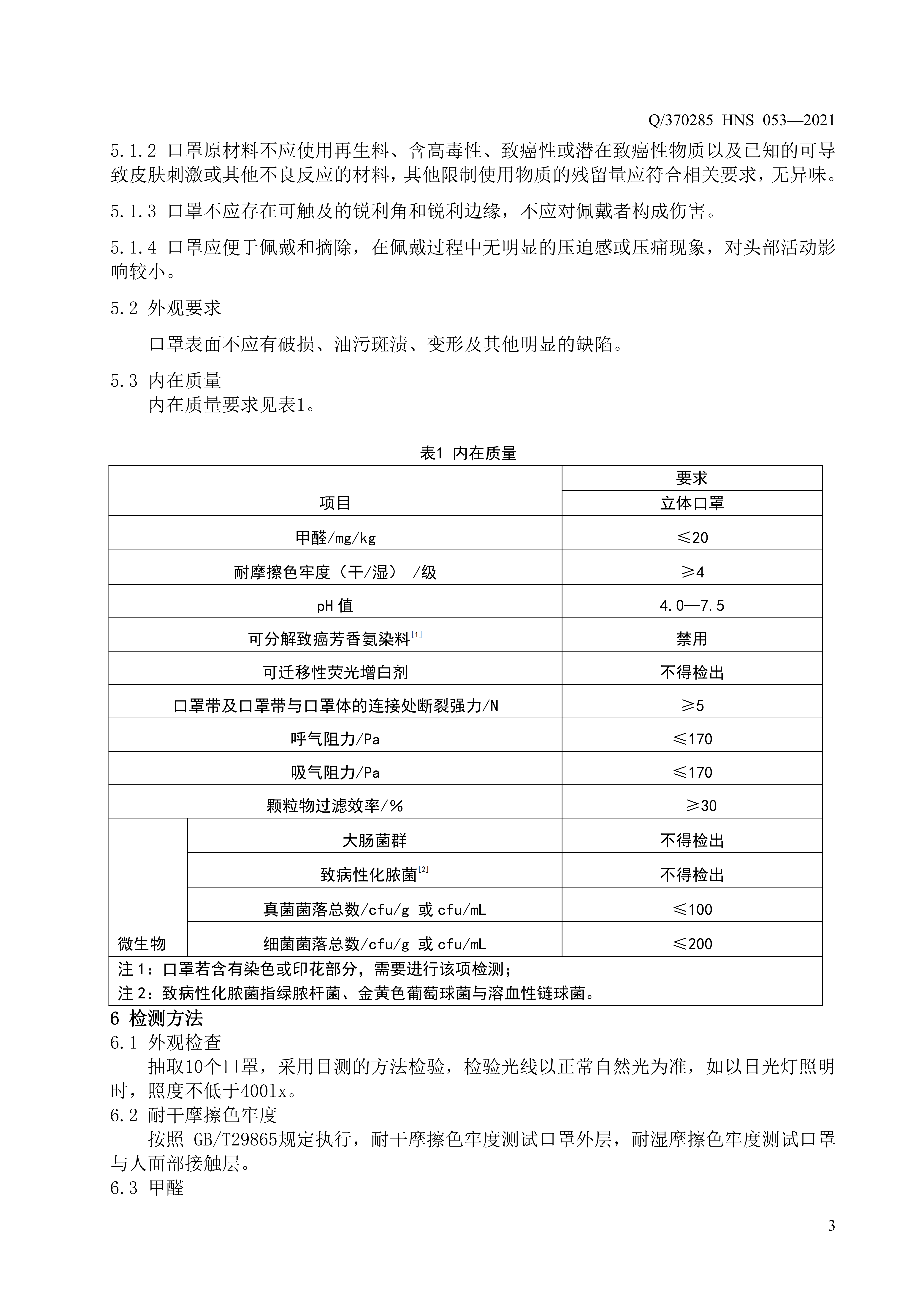 青島海諾生物工程有限公司企業(yè)標準 — 一次性使用兒童口罩